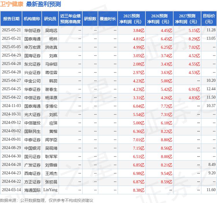 最新盈利预测明细如下: